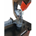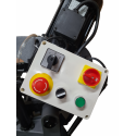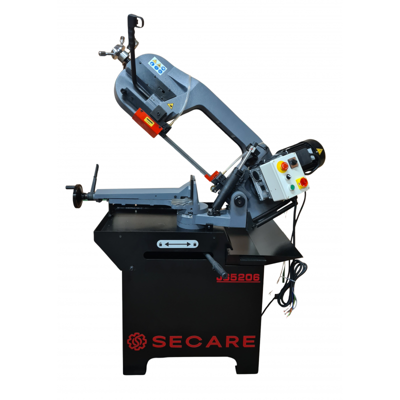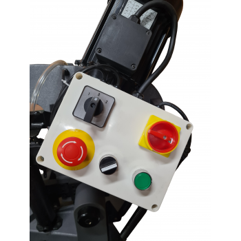 Ovládací panel umožňuje nastavenie rýchlosti posuvu a výber z dvoch rýchlostí rezného pásu – 35 alebo 70 m/min. Po dokončení rezu sa pohon pásu automaticky vypne. Bezpečnosť obsluhy zabezpečujú ochranné kryty a mikrospínače, ktoré zastavia stroj po ukončení rezania alebo pri otvorení krytu. Dodatočnú ochranu poskytuje automatické vypnutie pri pretrhnutí rezného pásu.