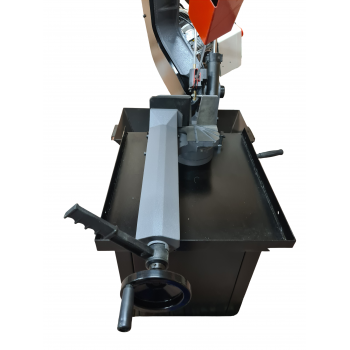 Horizontálna kovová pásová píla s otočným ramenom umožňuje rezanie materiálu kolmo aj pod uhlom v rozsahu od 0 do 60°. Podávanie materiálu môže prebiehať manuálne alebo pomocou mechanického zariadenia, pričom samotný posuv je automatický. Karbidové vodiace lišty v kombinácii s ložiskami zabezpečujú presné vedenie pílového pásu, vyššiu kvalitu rezu a dlhšiu životnosť pásu aj stroja. Súčasťou je chladiace čerpadlo s uzavretým okruhom chladiacej kvapaliny.