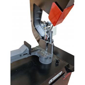 Masívne liatinové rameno spolu s 27 mm širokým pílovým pásom umožňuje efektívne rezanie profilov aj plných materiálov, a to pri kusovej aj viacsériovej výrobe. Zverák je umiestnený v nastaviteľnom lôžku a vybavený rýchloupínacím mechanizmom. O presnosť a priamosť rezu sa starajú centrálne karbidové vodiace prvky so systémom valivých ložísk.