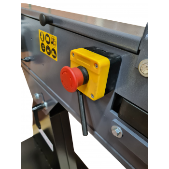 Stroj je vybavený pogumovaným napínacím kolesom s vyrovnávacím systémom vedenia pásu, čo zabezpečuje stabilné a presné vedenie brúsneho pásu počas prevádzky.